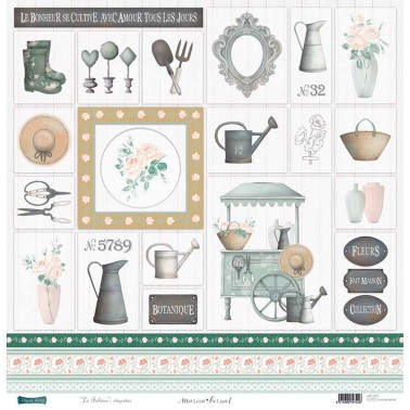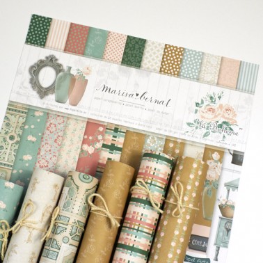 12 papeles a doble cara 30x30 cm, 190 gr. más la portada con la trasera con recortables.