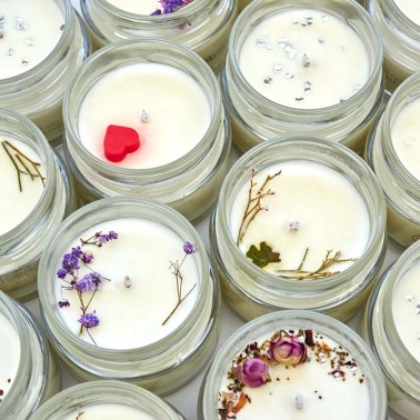 Las velas están hechas artesanalmente con cera de soja, tratándose de un producto sostenible, renovable y biodegradable. Su combustión no supone ningún riesgo para la salud ni eleva los niveles de toxicidad del ambiente, ya que no aumenta los niveles de CO2, ni produce hollín..