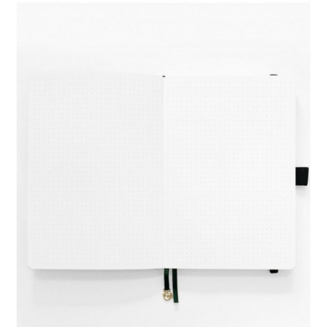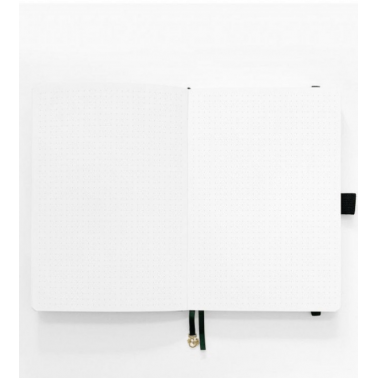 Cuaderno de lomo con malla de puntos. Apertura de 180º. Papel blanco ultragrueso de 160 gr.